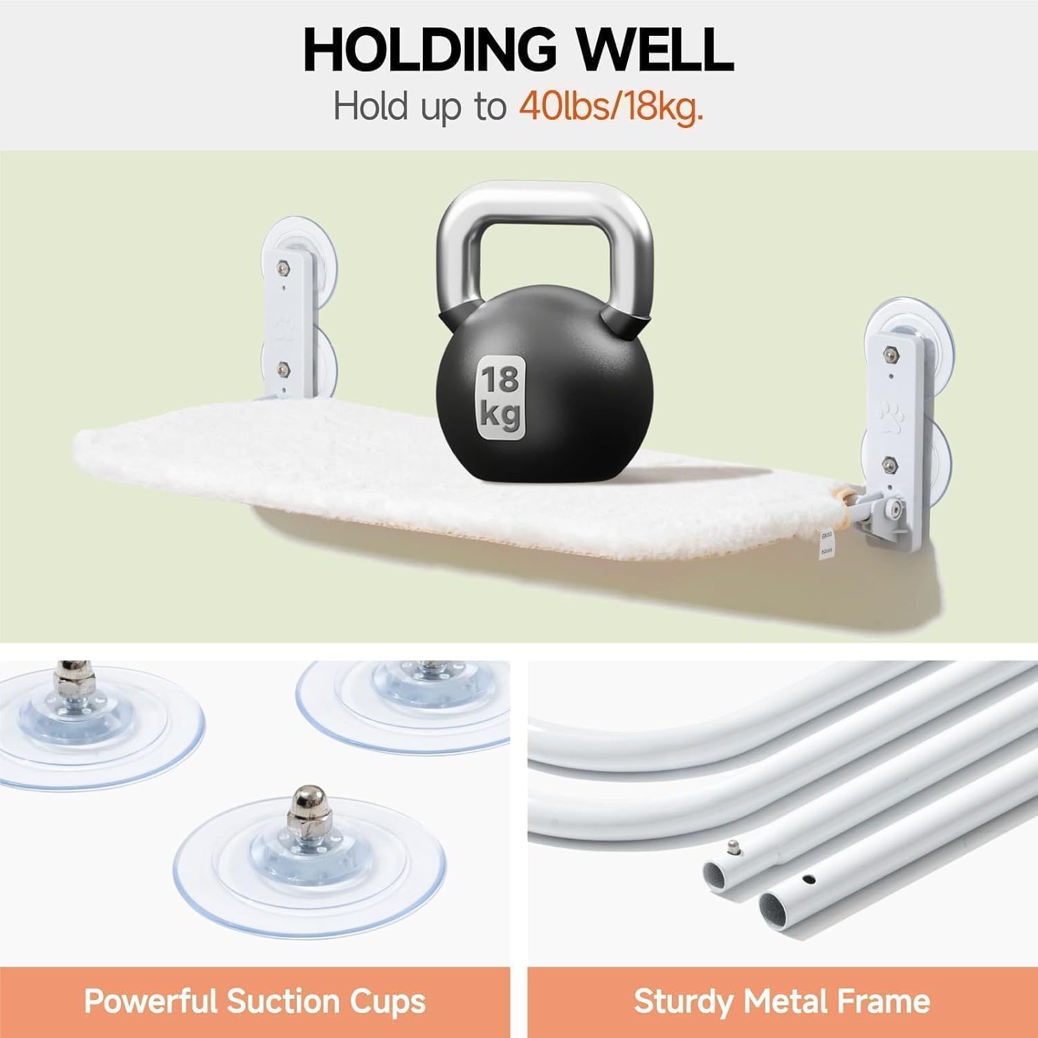 - Durable & Safe: Steel frame and suction cups support up to 40 pounds.